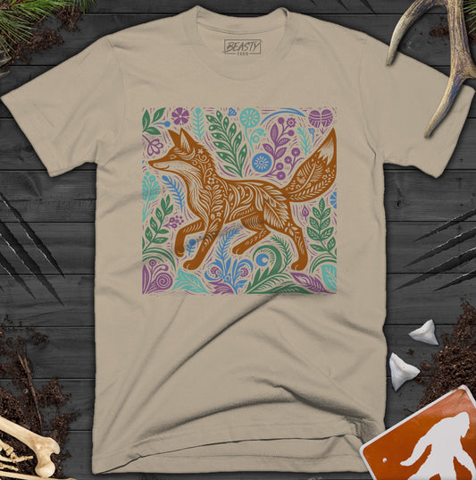 Botanical Floral Woodcut Fox T-Shirt